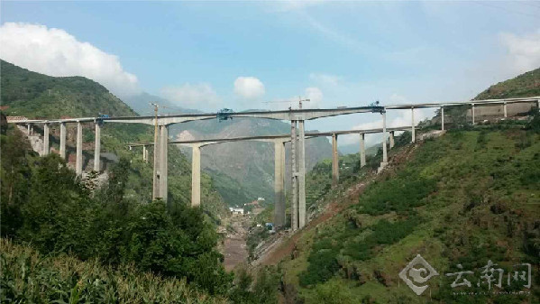 昭会高速公路上的牛栏江特大桥全长765米,桥墩最大横跨180米,离水面最高180米。