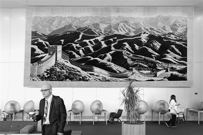 高高挂在联合国代表休息北大厅里的长城挂毯是恢复中国在联合国合法席位后不久,中国政府向联合国赠送的一件珍贵礼品。这幅挂毯长10米,宽5米,描绘出了万里长城蜿蜒于洒满阳光的山间的画面,其中满目的绿树象征着中国的繁荣昌盛。