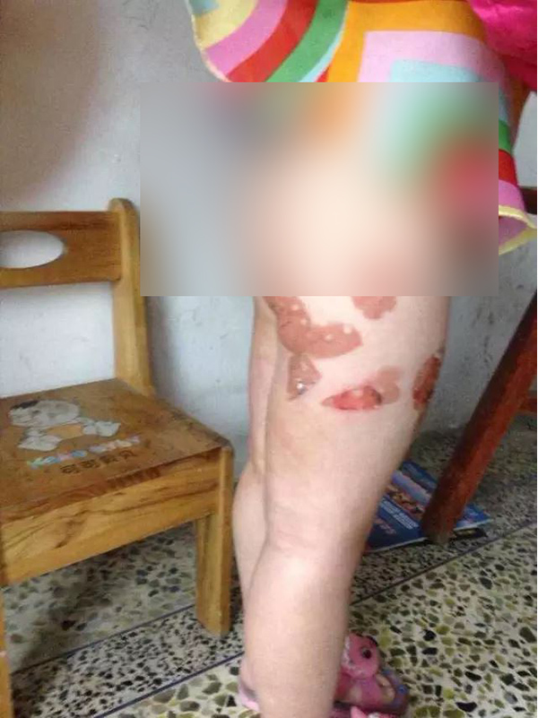 温州4岁女童遭父亲虐待 双腿多处被灼烫流脓(组图)