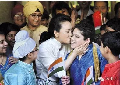 比如,去年9月,彭丽媛在新德里泰戈尔国际学校亲吻一个胖小伙儿的照片,风靡网络。在随访南非时,彭丽媛曾经前往德班音乐学校和祖鲁文化村。在随访刚果时,她曾经去看望艾滋患儿。