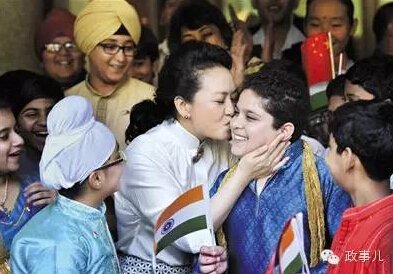 比如,去年9月,彭丽媛在新德里泰戈尔国际学校亲吻一个胖小伙儿的照片,风靡网络。在随访南非时,彭丽媛曾经前往德班音乐学校和祖鲁文化村。在随访刚果时,她曾经去看望艾滋患儿。