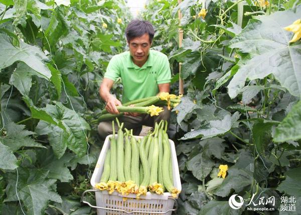 人民网谷城9月23日电 9月22日,谷城县海煌公司员工正采摘还顶着黄花、带着刺、水灵灵的丝瓜、黄瓜、苦瓜等时令蔬菜,为前来收购的超市做准备。湖北省谷城县冷集镇3万多亩蔬菜搭上农超对接直通车后,新鲜蔬菜直接进入了市民的“菜篮子”,菜农不再为销售发愁,商家也节约了流通成本,实现了互惠共赢。(王轩玲)
