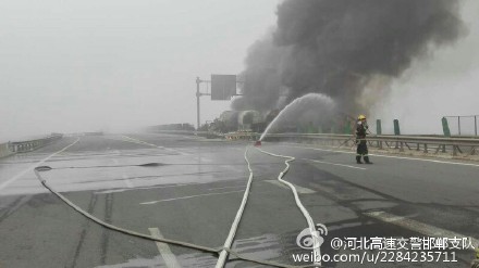 青兰高速邯郸段4车相撞起火 已致1死3伤(图)