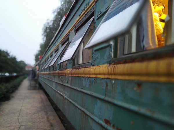 该组图共有13张。图片中,一列已经退役的绿皮火车静静躺着,车厢外表的绿漆已严重剥落。车厢外,晾晒着一些衣服与床单。