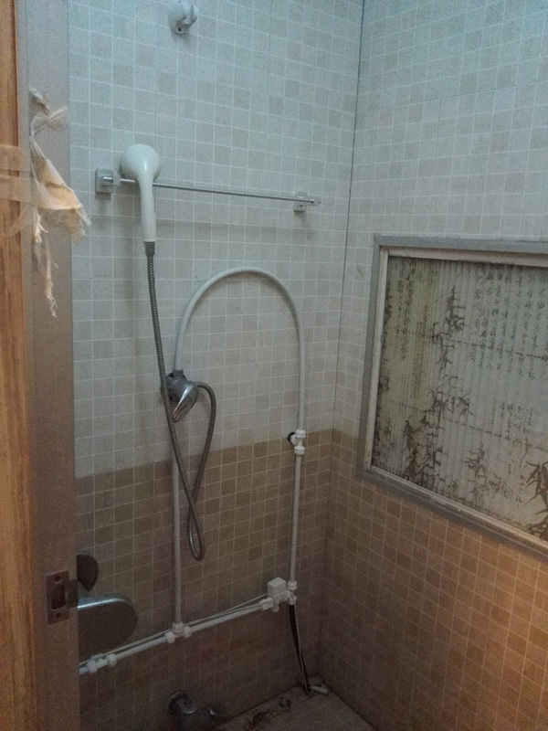 图片中,火车宿舍内部卫生间还配有热火器与淋浴设施。车厢外部,还设有通水管道。