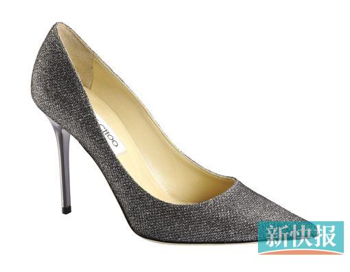 经典的尖头细高跟鞋,煤灰色比黑色更时髦,隐隐的闪光增加女王feel。