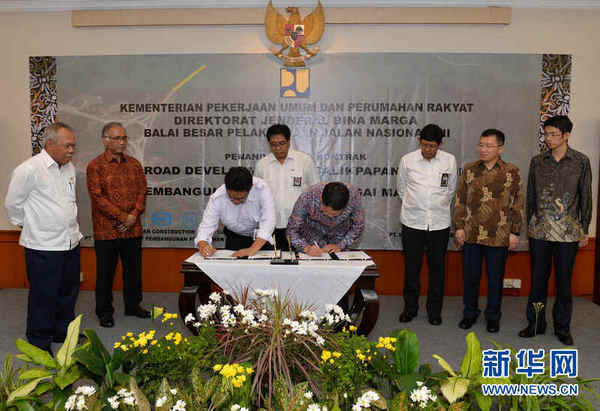 9月23日,在印度尼西亚雅加达,双方代表在签约仪式上签字。当日,北京城建集团有限责任公司与印尼公共工程住房部签署印尼东加里曼丹省巴里巴板至萨玛林达高速收费公路第五标段合同。项目中标价约合3.86亿人民币,项目工期约两年。新华社记者贺长山 摄