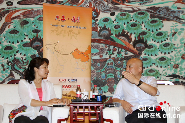 敦煌研究院院长王旭东博士(右)接受本台记者采访