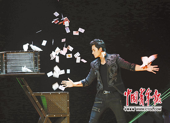 9月24日,中国政法大学昌平校区,魔术大师在倾情演出。当日,2015年世界大学生魔术交流大会暨国际魔术大师魔幻秀在这里开幕。本报记者 陈剑/摄