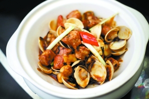 材料:鲜排骨1斤,白贝1斤,紫苏20克,青红椒30克,葱姜蒜各20克,花生油、盐、白砂糖、味极鲜、老抽、胡椒粉、料酒、鸡粉、生粉各适量。