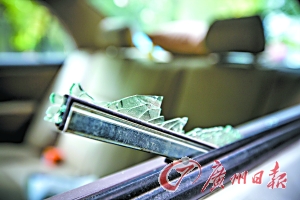 被砸破的车窗。广州日报记者苏俊杰实习生廖巍摄