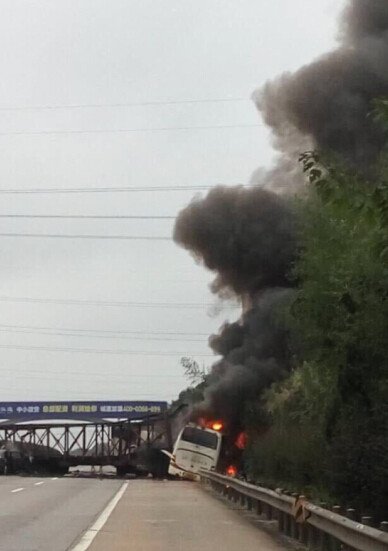 沪昆高速湖南段大客车被撞起火 已致22死13伤(图)