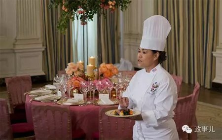 白宫在官网上特意介绍了国宴的历史。一场国宴需要至少6个月的准备时间,从邀请函、菜单、席位座次安排,都需要精心设计,第一夫人也会全程参与其中。
