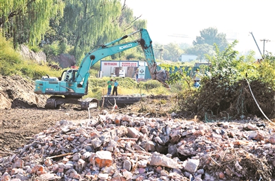 昨日,北京青年报记者来到位于丰台区丰草河的改造现场,发现一直拖着治理“后腿”的拆迁已经完成,新开河道正在开挖。到今年年底,每年汛期都会严重积水的丰台西路沿线部分路段积水情况将得到解决。“别看现在像废墟,本月初的时候可还是一所会所。”丰台区水务局相关负责人表示,“大坑原来就是会所里的景观湖,现在刚好可以当作河道的一部分。”据介绍,丰草河治理从2013年就已经启动,还结合丽泽商务区的建设,将老河道改道,挖出一条兼具行洪与景观两个功能的新河道。然而在开挖新河道时,遇到了“钉子户”——占地4000平方米的私人会所,经过两年的交涉无果,最终依法实施了强行拆除。