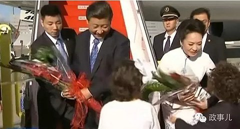 当然,不管是此次美国之行,还是早前的俄罗斯韩国和印度之行等,习近平与彭丽媛出飞机舱门后,或由彭丽媛挽着习近平胳膊,或二人十指相扣走下飞机旋梯的刹那才是摄影记者的沸腾点。