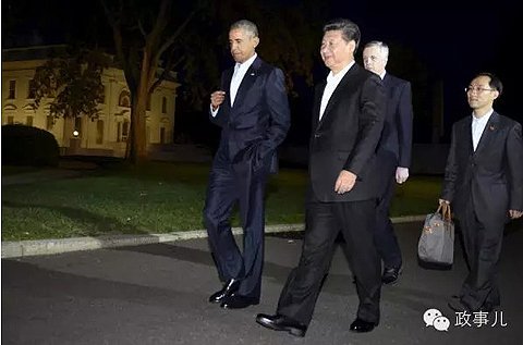 9月24日,习近平与美国奥巴马从白宫西翼步行前往街对面的布莱尔宾馆,出席奥巴马举行的私人晚宴。在步行途中,除了习近平与奥巴马,另外只有孙宁和另外一位美方翻译紧随其后,而同样的场景也曾出现在2014年11月11日,习近平与奥巴马在中南海的“瀛台夜话”中。
