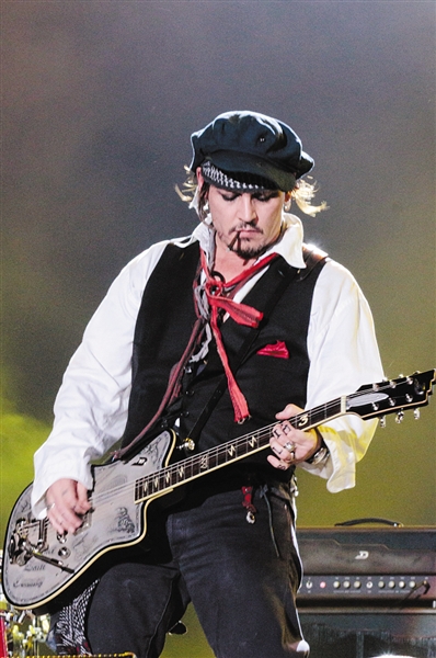 9月24日,里约热内卢,“海盗迷们”,你们桀骜不驯的德普叔又rock回来了,和老牌惊骇摇滚歌手Alice Cooper同台飙歌。