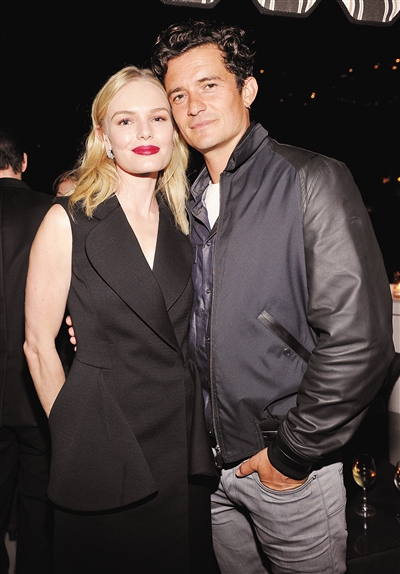 9月24日,洛杉矶,“精灵王子”布鲁姆在酒会中紧搂凯特·波茨沃斯合影,凯特是他在2002年至2006年的正牌女友。