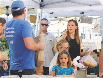9月20日,洛杉矶,离婚的本·阿弗莱克和加纳一起带孩子们逛农夫市场,媒体称,两个大人参加了婚姻咨询,有复合的可能。