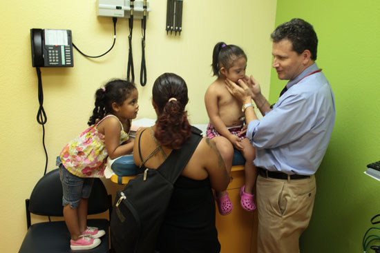 美国迈阿密大学米勒医学院,医生在为儿童患者进行检查。 Joe Raedle/摄