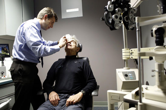 美国罗利,常使用Google+与病人探讨病情的医生波特在为病人做眼部检查。 Travis Long/摄