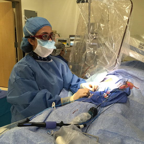 戴着防辐射帽子的刘秀实医生。刘秀实供图