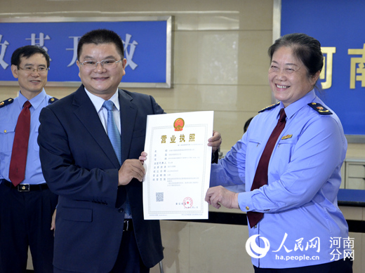 原标题:河南颁发首张“一照一证”营业执照 注册到发证仅3天