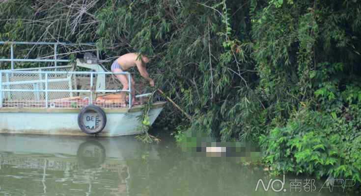 打捞人员正在靠近浮尸。南都记者祝勇摄.jpg