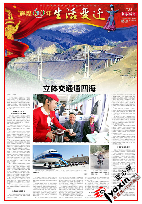 60年来,新疆交通运输的变化,不断地改变着人们的出行方式。特别是中央新疆工作座谈会召开以来,新疆交通运输进入了投资规模最大、增长最快、社会效益最好、管理服务水平显著提升的时期。一条条平坦的公路、笔直的铁路、新开通的航线,日趋完善的立体交通,多种选择的交通方式,让新疆人出行越来越方便、快捷、自由。