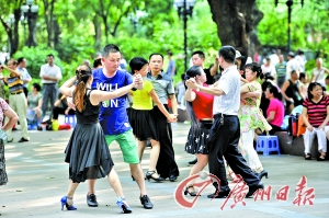 人民公园内,市民正在跳广场舞。广州日报记者邵权达 摄
