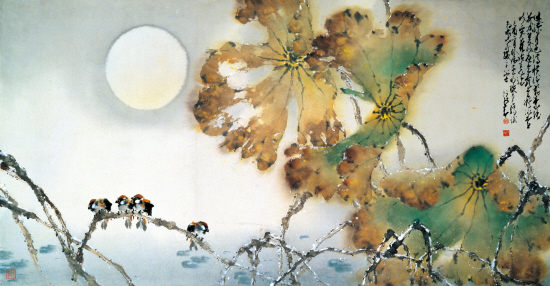 据悉,为了给观众带来全新的视觉效果和艺术享受,本次展览特根据作品内容有针对性地做了新媒体的设计。展场中央特设了两个3D投影设备:一个以赵少昂的画作《碧水净无尘》作为整个展场的中心背景,为配合荷叶上的一层白雪,画中不停有雪花轻舞飘落;另一个以他的《九如图》作为背景,置于展场中央的地面上,观众可以步入其间,鱼儿就好似受到了惊吓快速地游窜,水也跟随着荡漾,让人犹如置身真景实境。此外,展览中更是汇集了赵少昂艺术创作巅峰之作,包括香港文化博物馆藏的《芭蕉》五联屏和广州艺术博物院馆藏《苍松吐艳》四联屏等。