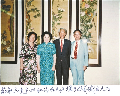 韩叙大使夫妇(右二、右三)和本文作者夫妇摄于驻美使馆大厅