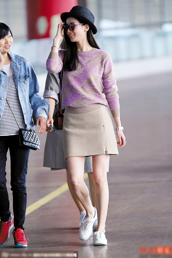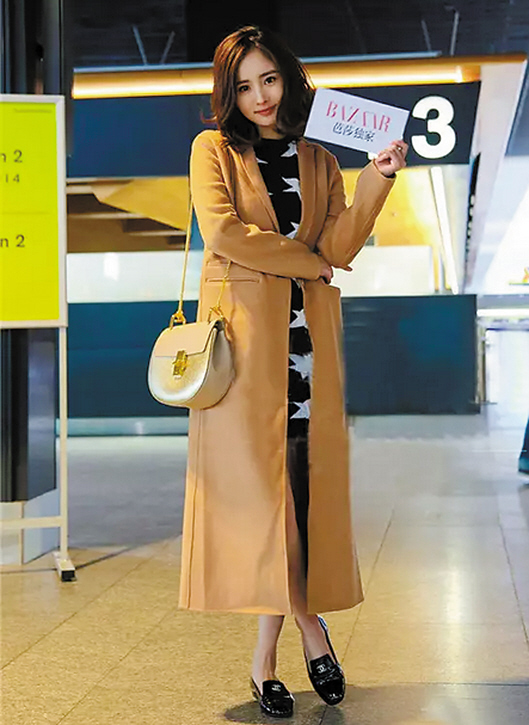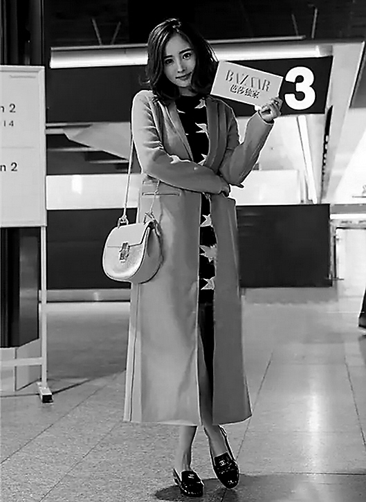 10月4日,白百何身着Chanel现身首都机场,出征巴黎时装周。