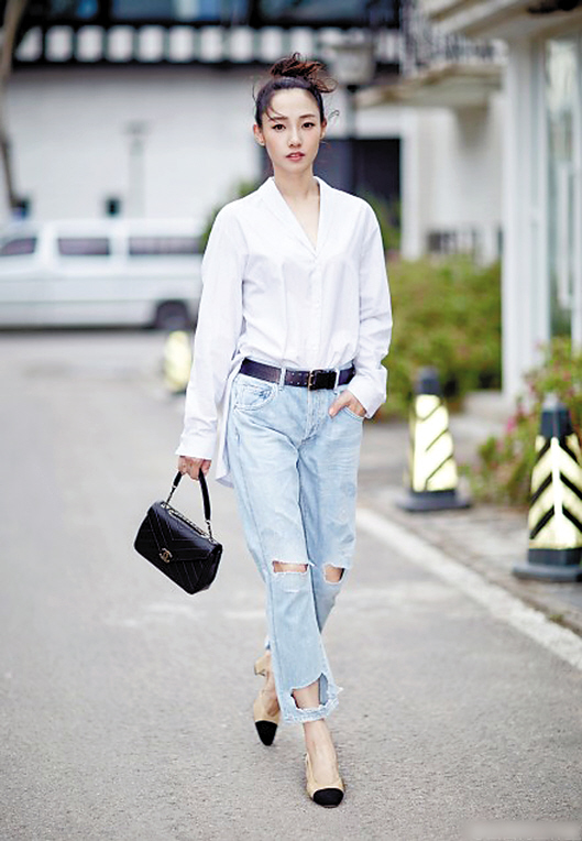 10月2日,宋佳现身机场前往春夏巴黎时装周看秀,并在微博秀出她的造型——梳着半丸子头,身着白色睡衣套装,脚踩板鞋,简约舒适的搭配十分有范!