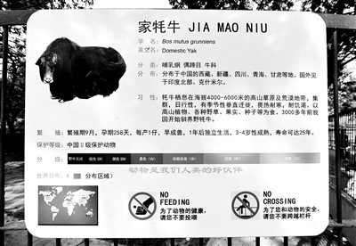 昨天上午9点,北京青年报记者在位于北京动物园西区北侧的儿童动物园内看到,想要跟动物亲密接触的游客们都早早来到了这里,多以儿童为主。北青报记者在现场注意到,儿童动物园“收票口”有专门的工作人员会为每一位前来参观的游客发放小油菜作为食物用来投喂给饲喂区的动物们,油菜定量发完为止。这里的工作人员告诉北青报记者,“因为是国庆假日,前来游览的人较往常要多,用来投喂的50斤小油菜今天很快就发放完毕。”在游客们带着发放的小油菜前去饲喂区喂动物的时候,却发现挂在“饲喂区”的牌子两边的“家牦牛”和“黇鹿”两种动物的简介牌上都特意在黄色区域标明“为了动物的健康,请您不要投喂”。这让部分游客感到困惑,北青报记者在现场听到有游客质疑:“这到底允不允许喂呢?”