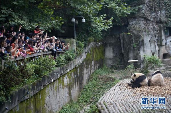 10月3日,游客在成都大熊猫繁育研究基地观看大熊猫。国庆长假期间,成都大熊猫繁育研究基地游客络绎不绝。