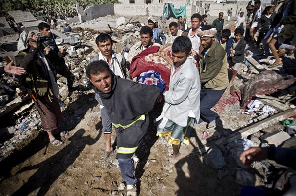 3月26日,沙特等国战机对胡塞武装控制的首都萨那实施多轮空袭,目标锁定在被这一武装控制的总统官邸和萨那国际机场等多个重要地点。在空袭中,沙特等国战机误炸了萨那国际机场附近的一处居民区,造成至少25人死亡,50余人受伤。