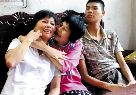 走进狭小简陋的厨房,英姐开始轻手轻脚地准备早餐。快7时,楼上传来声响,3个孩子起来了,他们中最大的26岁,最小的也已19岁,严格来说,不应再被称为“孩子”,但由于先天性脑瘫,三人的智力水平都与孩童无异,大小便、吃饭均不能自理,生活全靠英姐照顾。