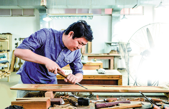 肖茂国:首先肯定是选材了。在南方制作的琴,面板首选杉木,而北方制琴用的一般是桐木。地板(没写错是地板哈哈)用梓木,一硬一软,代表一阴一阳。