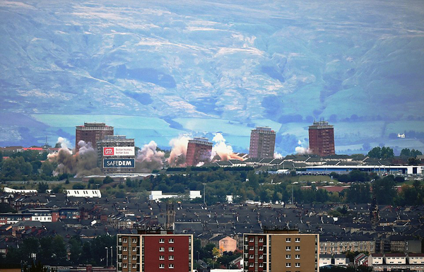 英国6栋近百米高楼被同时爆破拆除 历时仅7秒(组图)