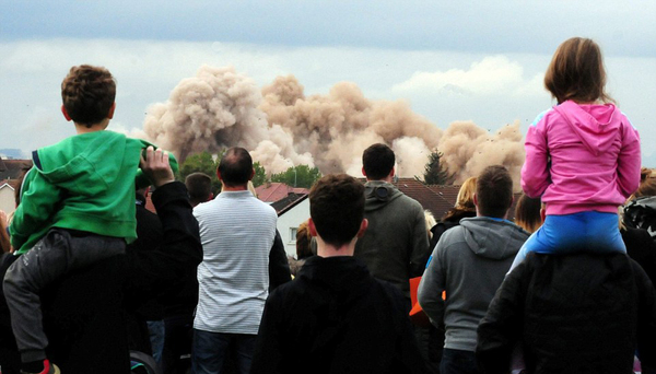 英国6栋近百米高楼被同时爆破拆除 历时仅7秒(组图)