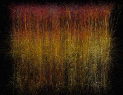 的确,虽然现在还只能模拟沙粒大小的大脑皮质,以及老鼠感到胡须变弯这样的神经活动,但聚沙成塔,今后有可能模拟出老鼠整个大脑的活动,乃至进一步模拟出人类大脑的活动。看上面这张模拟老鼠大脑神经网络的图片,是不是已经和《黑客帝国》的电影剧照很像了?如果有一天《黑客帝国》中描述的场景真的实现,在那个虚拟空间中,第一个生物也许就是现在还只有沙粒那么点大脑的老鼠。(记者黄堃,新华国际客户端报道)![]()