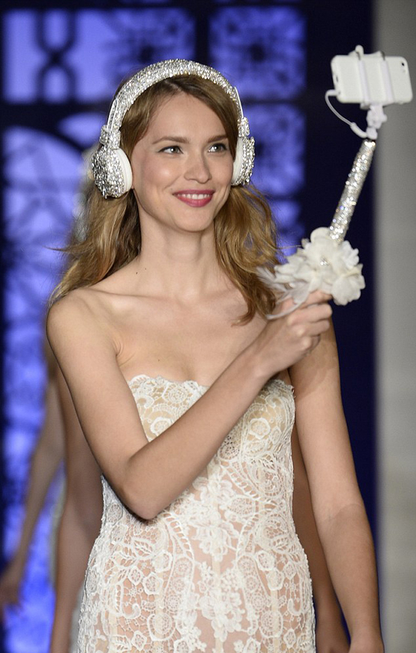 纽约婚纱秀自拍杆抢镜 模特玩转自拍乐趣(组图)