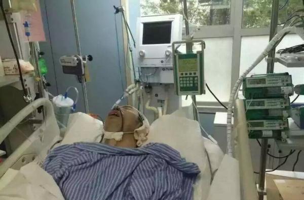 “郑州房妹”爆料人杨延方在郑州遇袭。图为杨延方在重症监护室治疗,尚未脱离生命危险。