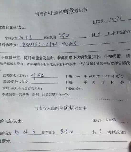 昨晚6时许,知名媒体人、“郑州房妹”爆料人杨延方在郑州遇袭。家属今日称,杨延方目前“重伤昏迷,已下病危通知书”。