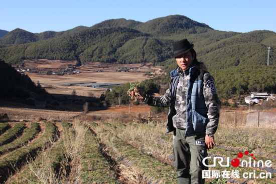 纪武在药材种植基地检查育种