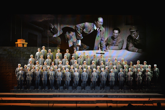 《西柏坡组歌》以宏大的叙事结构和细腻的描述手法构成了文学和音乐的独特视角,综合运用合唱、重唱、领唱、对唱和戏剧讲述等艺术样式,跨越时空,情景交融。《热土》、《决胜》、《清风》、《赶考》4个乐章17首歌曲次第展开,柏坡岭、土坯房、发报机、小磨盘、煤油灯……一幅幅生动凝练的民俗画卷,一幕幕波澜壮阔的历史瞬间,一组组亲切鲜活的人物形象,跃然台上,直达心灵,凝聚成这部作品的形态与气象。