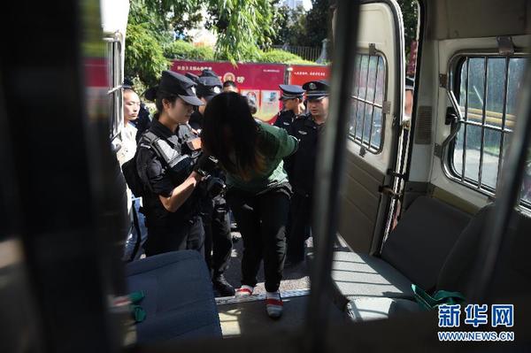 当日,贵阳市观山湖区人民法院在观山湖区碧海社区对6名传销组织头目进行公开审判,其中获刑最重者以组织、领导传销活动罪被判处有期徒刑三年,并处罚金五万元。据悉,本次公审涉及传销组织头目6人,传销团伙300余人,涉案金额2000余万元。新华社记者 欧东衢 摄