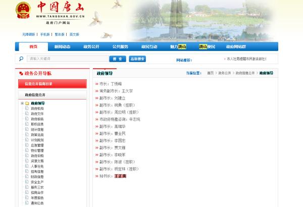 河北唐山市政府秘书长王正英简历从官网撤下(图)
