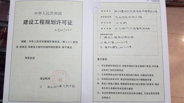 2001年7月12日,江夏区城市规划办公室向富利达花园酒店有限公司颁发了《建设工程规划许可证》。
